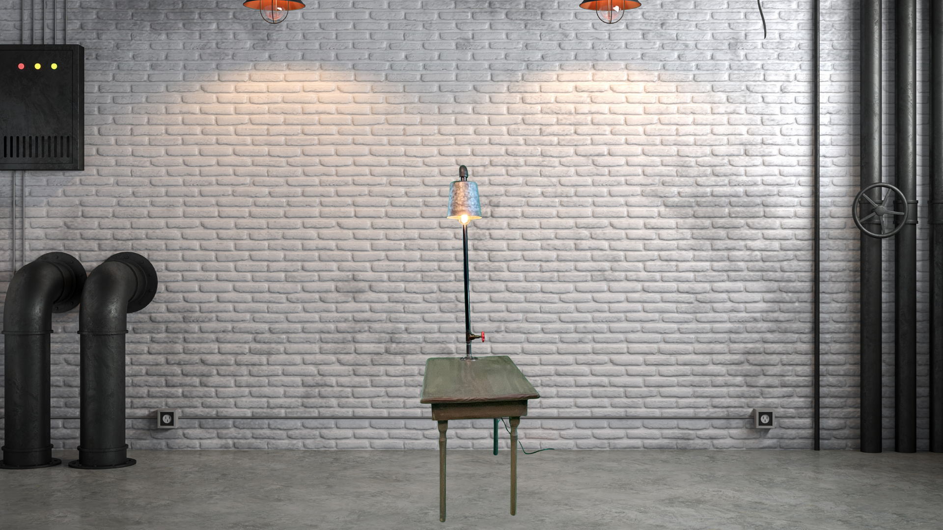 The table has been refinished with a hand-rubbed stain that highlights the natural grain and gives it a warm, timeless look. The lamp column is made from real steel pipe, fitted with a standard E26 socket and a hammered metal shade that casts a warm, soft glow. The red valve acts as the on/off switch, making the function as creative as the design.